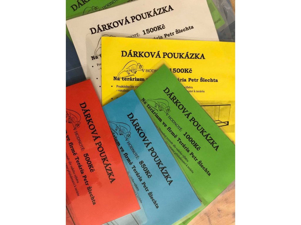 Dárkový poukaz na nákup terária nebo akvária. Platnost je neomezená.